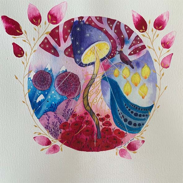 SoulStory is een aquareltekening, gemaakt op een hoogwaardig aquarelpapier van 300g, formaat 30cm x 30cm ( 11,8 x 11,8 inch)