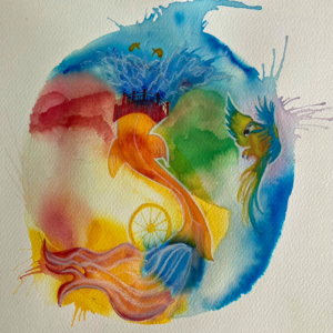 Tijdens het maken van een Auragraph stem ik me af op jouw energie. Ik ontvang dan beelden, kleuren en symbolen die ik op papier zet met waterverf, inkt en potloden. De tekening ontstaat geleidelijk, en zodra het kunstwerk klaar is, zie ik een verhaal dat ik met je deel. Dit verhaal biedt diepere inzichten in je persoonlijkheid, relaties, gezondheid en zelfs toekomstige mogelijkheden.